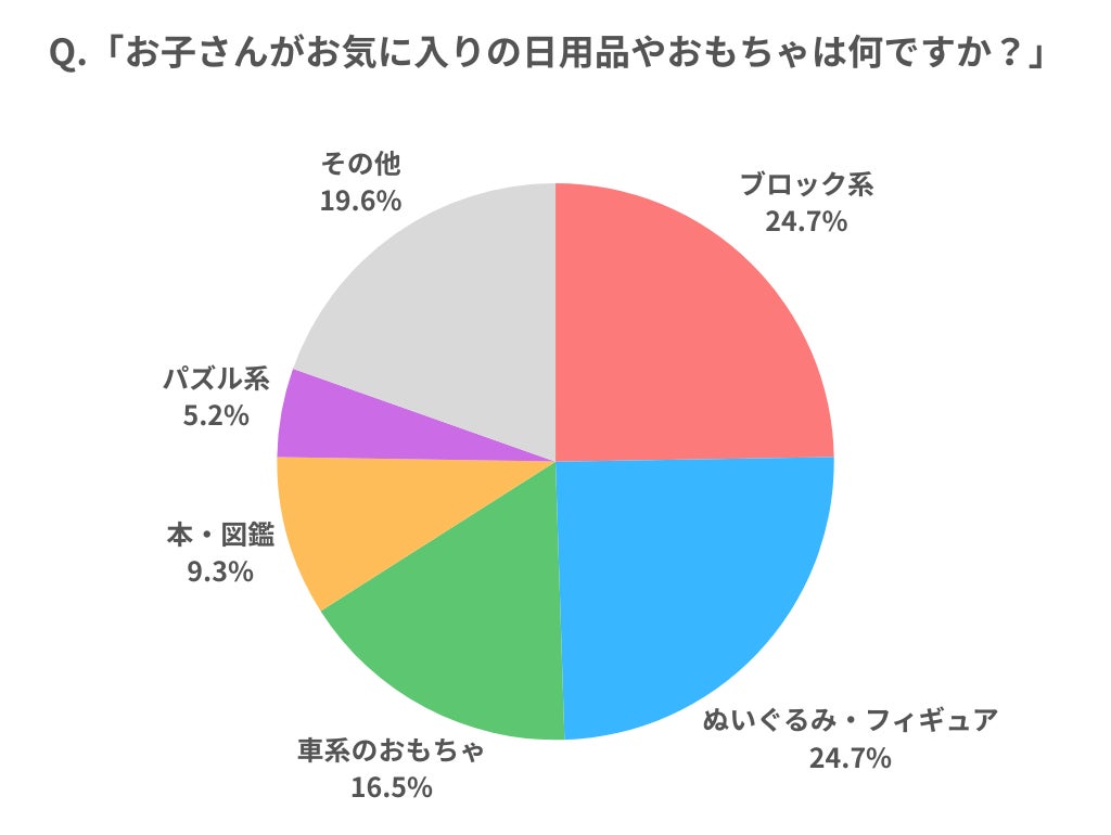 アンケート調査の結果によると、おもちゃの回答のほかに、日用品として「タブレット、タオル、クッション」などの回答も見られました。