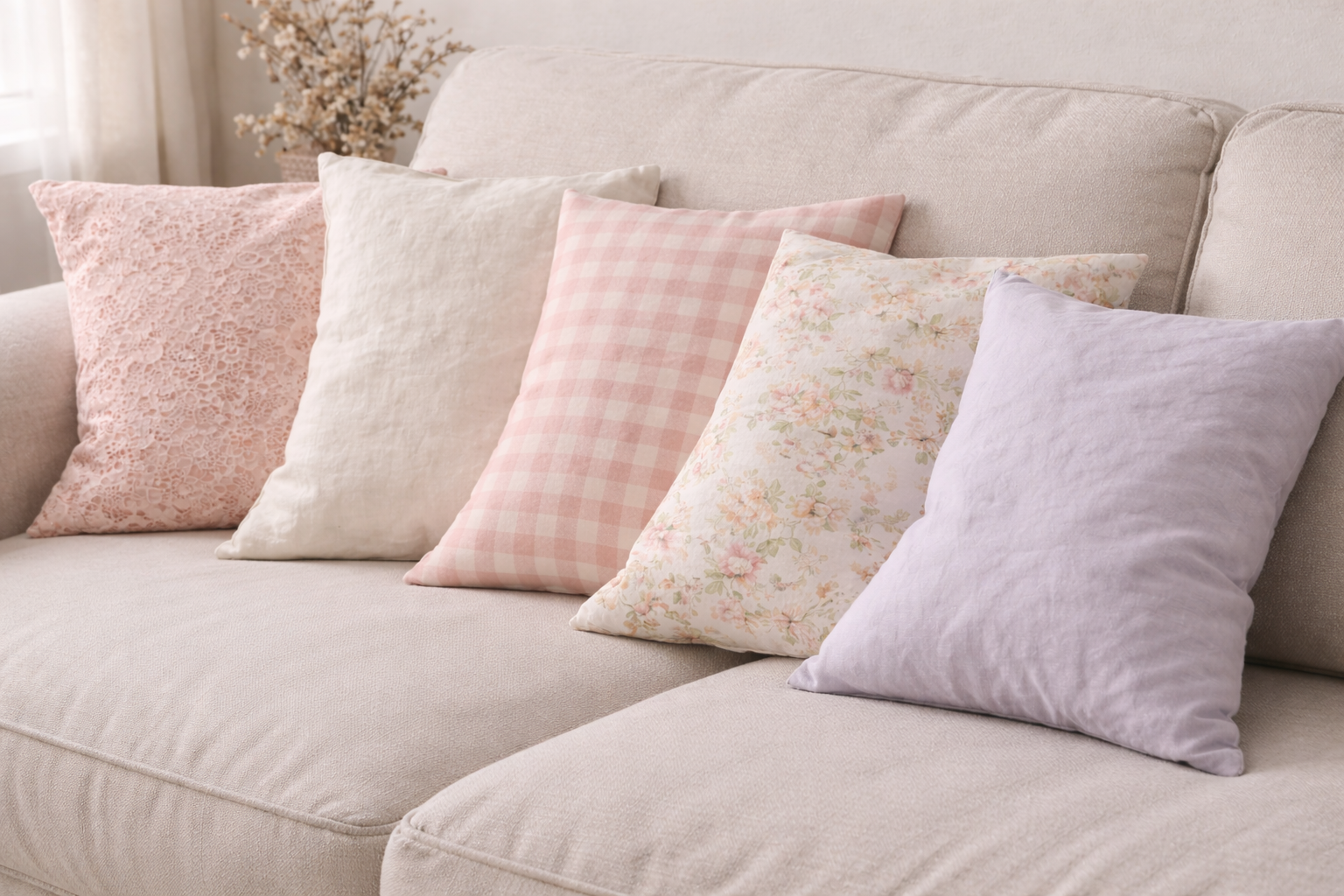 カーテン、ソファーカバー、ラグ、クッションカバーなど面積の大きいものを衣替えすると、空間の気を